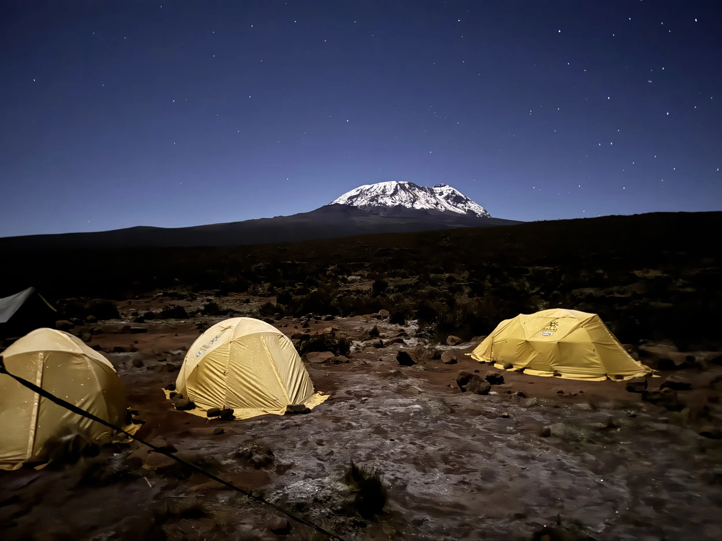 Shira Camp was much more exposed, the air biting and sharp. We finally pulled out hats, gloves, fleece socks, and sleeping bag liners. Phones and batteries went inside our bags to keep them from freezing.