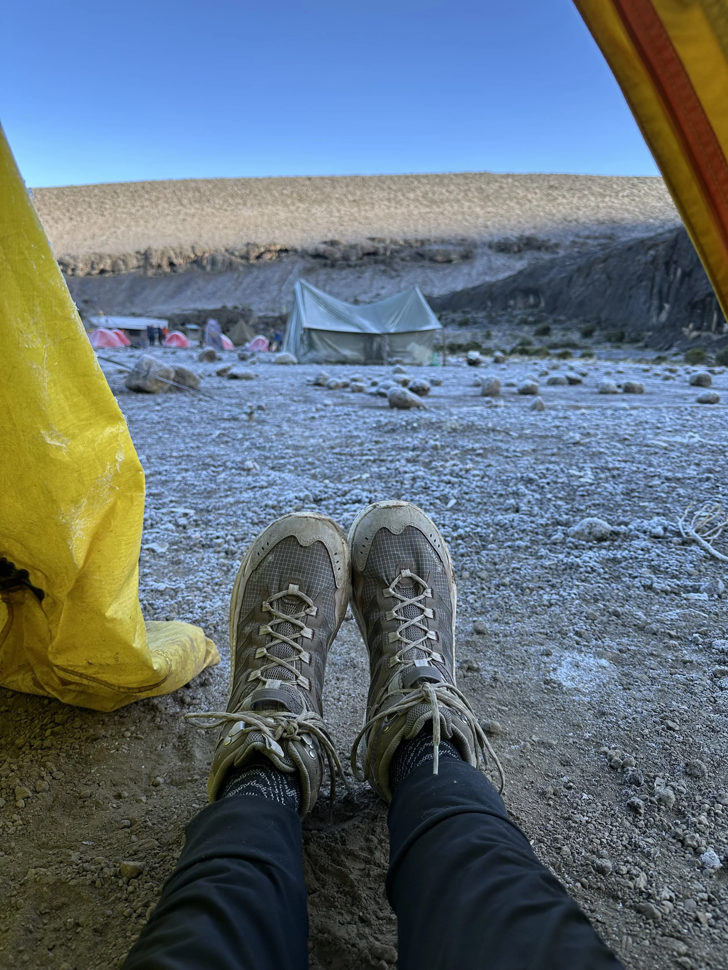 Barranco was busier than any camp so far—we’d merged with the Machame route. From here, we could even see the city of Moshi twinkling below. Before bed, we asked Emmanuel, the waiter, for hot water in our bottles for our sleeping bags. The crew thought we were brilliant. Really, we’d just stolen the tip from a Facebook group.